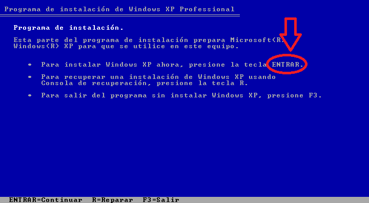 1-Bootear desde el Cd de instalación o desde el pendrive donde tengan el Windowx Xp